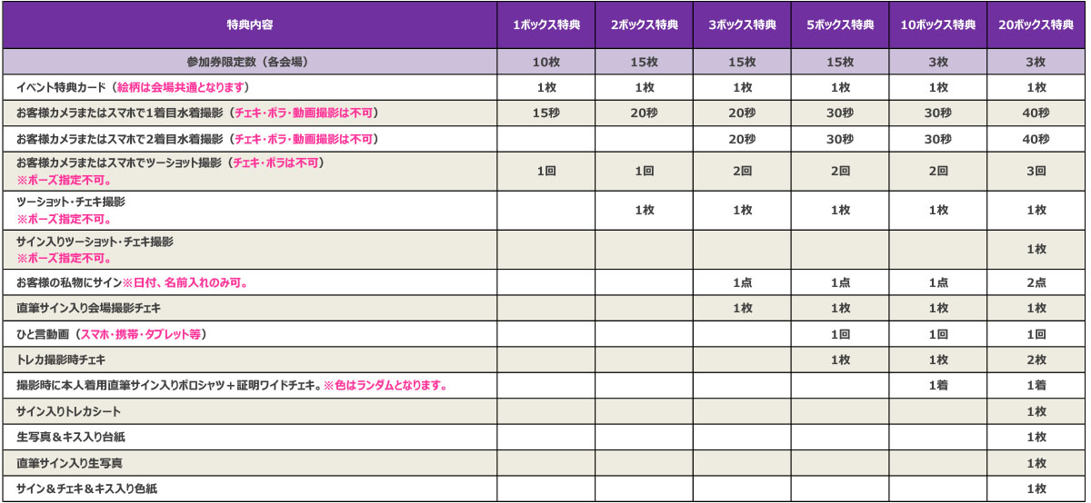 ・お客様カメラまたはスマホでツーショット撮影(チェキ・ポラは不可):3回